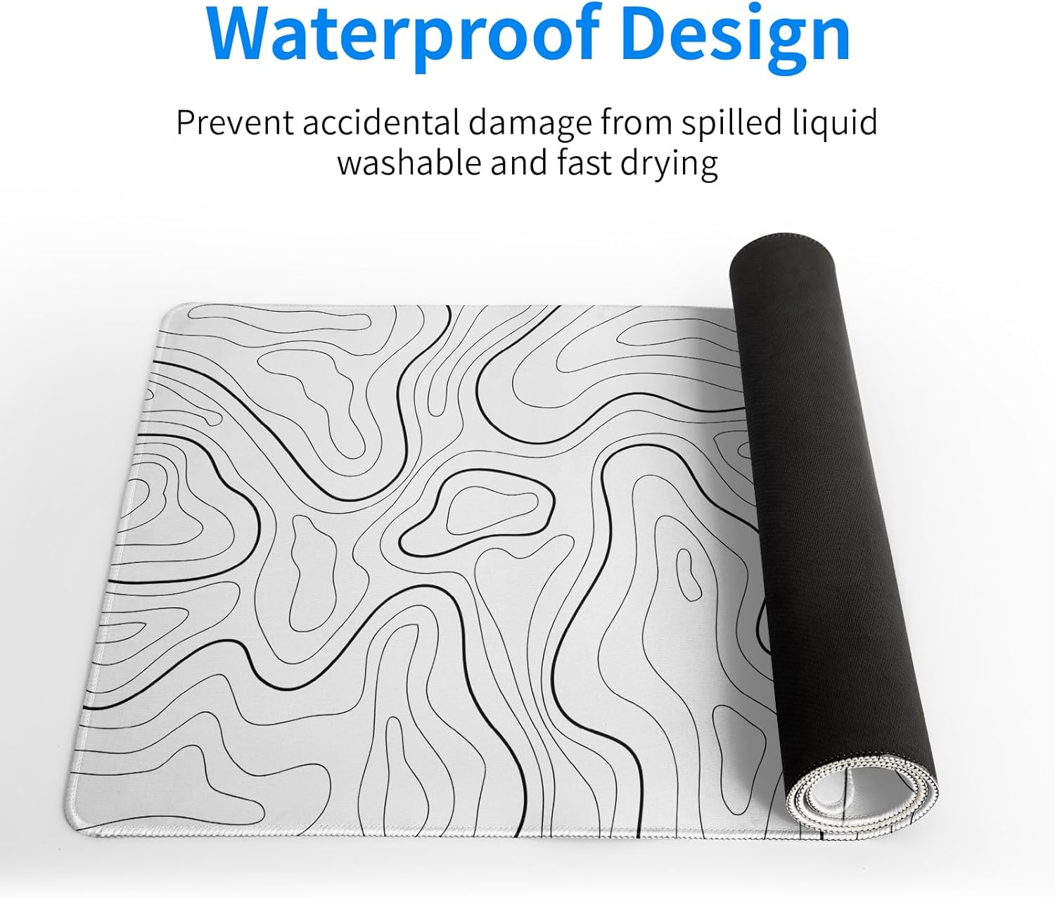 Gaming Mouse Pad Topographic Large Mousepad Keyboard 31.5 x 11.8in for Non-Slip Base and Stitched Edge, Extended Desk Pad XL Desk Mat (White)
