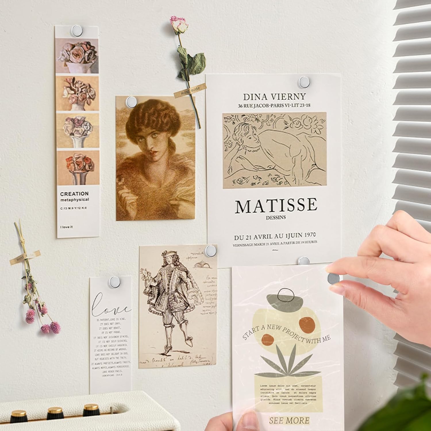 - 【Easy to Use】Simply push the base tack into the wall by hand, then place your poster or photo on the tack, then use the magnet to hang your item. Of course, pushpins and magnets can also be used separately, according to your needs. Pushpin is easy to use.