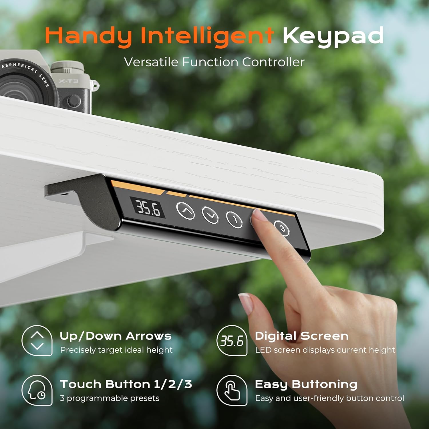 - ăMulti-Function Intelligent KeypadăOperating Voltage: 110 - 220V. Featuring a sleek LED display and easy-buttoning keypad, this adjustable standing desk offers 3 customizable height presets and precision up-and-down controls. This standing desk for walking pad allows you to switch between sitting and standing at the press of a button, with an adjustable height range from 28.3" to 46.5". Say goodbye to sedentary habits and hello to improved focus, energy, and posture with this electric standing desk