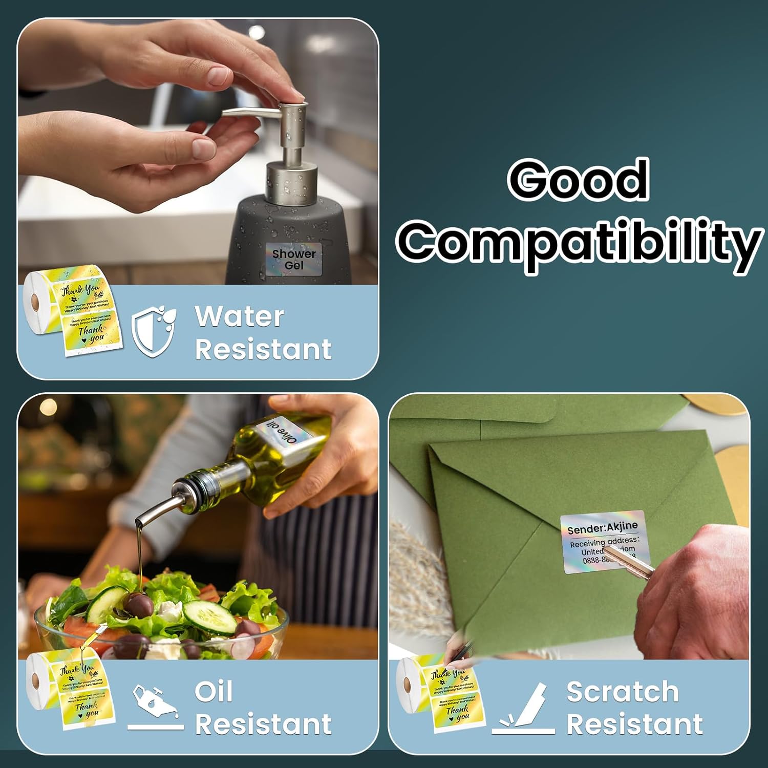 2.25x1.25 Inch Thermal Labels Gold, Holographic Sliver Barcode Thermal Labels for Thermal Printer and Small Business, Multi-Purpose Rectangle Stickers, 500 Sheets/Roll