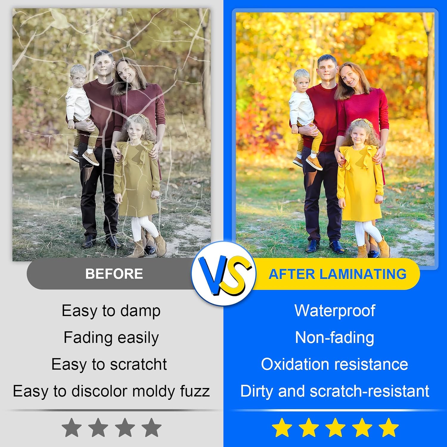 - CREASE PROOF: Thermal laminator needed, not self-adhesive. No bubbles, no shrinkage. The double layer does not come off easily, good plastic sealing performance.