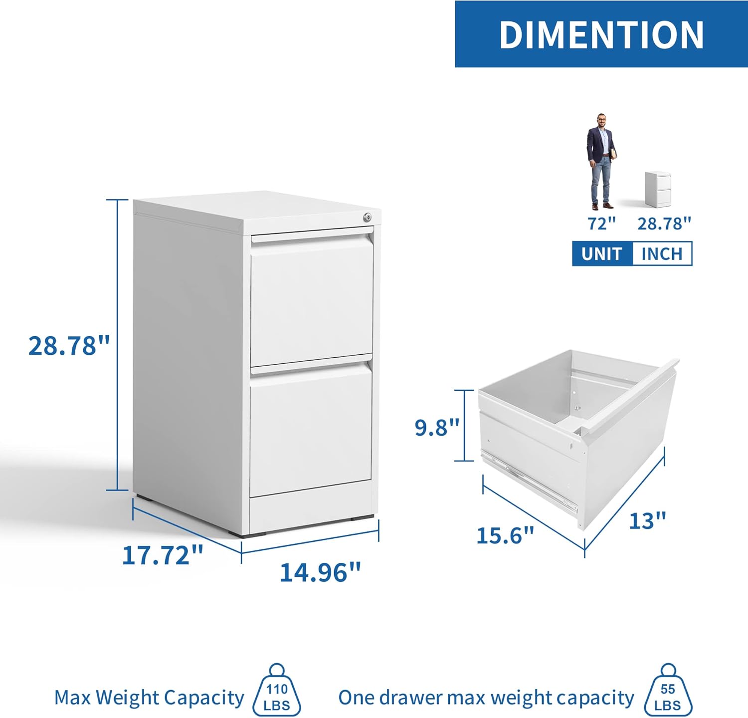 - ăMultiple Storage TypesăThis 2 drawer of the metal cabinet for home office is larger and deeper than similar cabinets in the market. Making it the perfect solution for all your storage needs. The drawers of the locking file cabinet are also equipped with one adjustable hanging rail, allowing you to perfectly store letters, legal, A4 size folders and file box to meet your different needs.