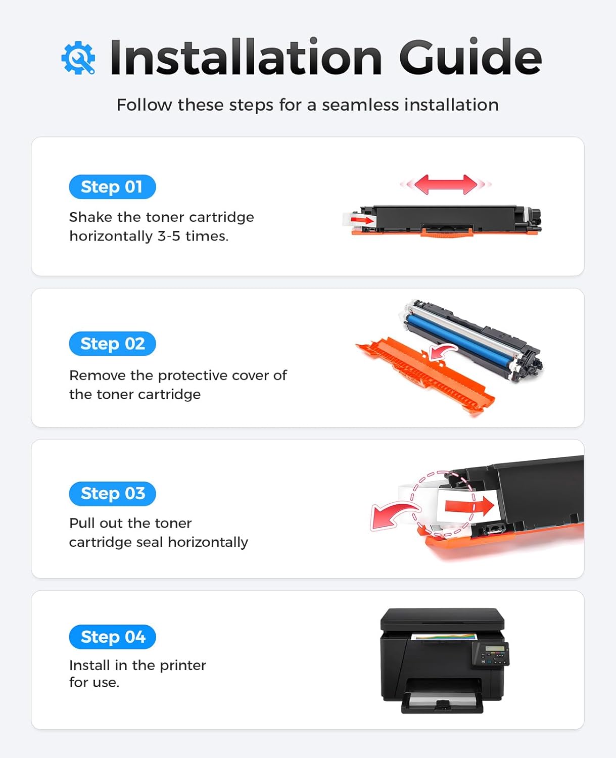 - The latest chip version: The JCTONER toner cartridges are equipped with the latest version of built-in chips, ensuring perfect compatibility between each toner cartridge and the printer. This enables you to print efficiently while maintaining stability and reliability, making installation convenient without the need for manual adjustments. All JCTONER toner cartridges have undergone strict quality testing and have obtained ISO9001 certification. High-quality toner cartridges can meet the demand for high printing volume. The fine toner ensures clear and stain-free printing results and extends the lifespan of the printer. You can purchase with confidence.