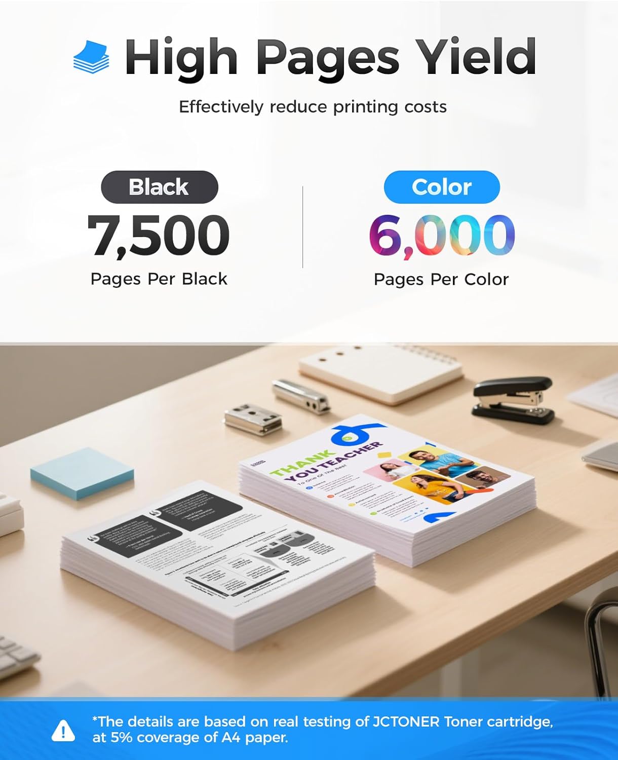 - High-Yield: up to 7,500 pages per 414X Black and 6,000 pages per 414X Color (Total 25,500 pages, 5% coverage).