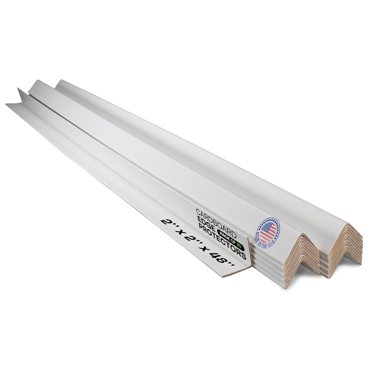 IDL Packaging 2” x 2” x 48” Cardboard Edge Protector (Pack of 20) - Corner Protectors for Shipping, Storage, & Moving – Reinforced Corner Guard Protection for Pallets, Wall Corners, & Furniture