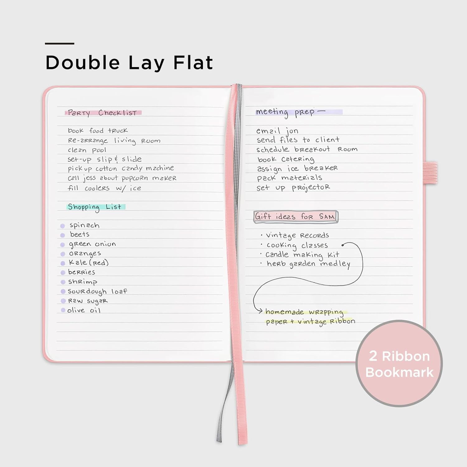 - 180° LAY-FLAT DESIGN: The lay-flat design allows for easy writing and ensures that you can utilize every page efficiently. Journaling, note-taking and planning has never been easier. 2 Bookmarks help you find important content faster.