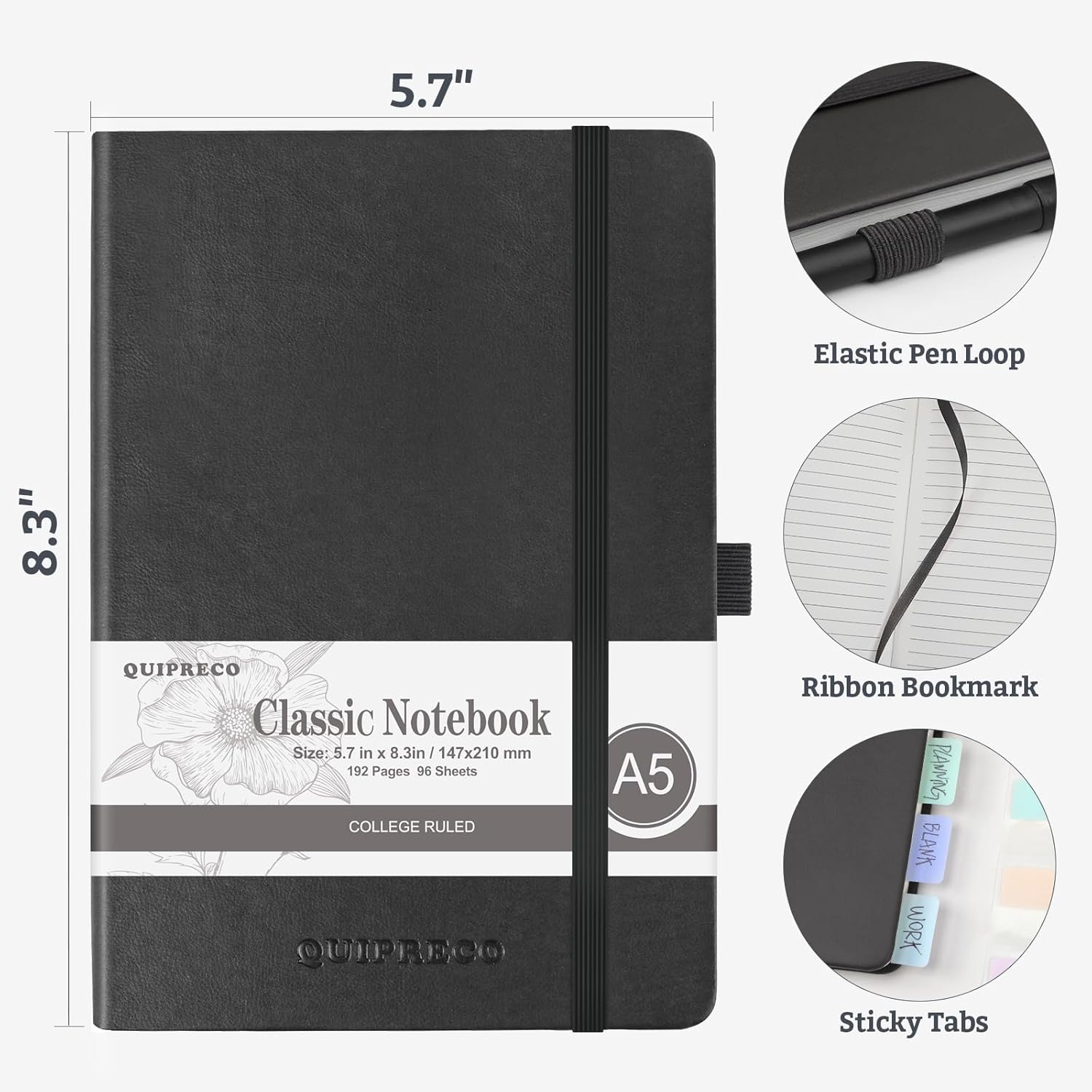 - PERFECT SIZE: A5 dimensions measuring 5.7 x 8.3 inches make this notebook ideal for carrying in bags or backpacks