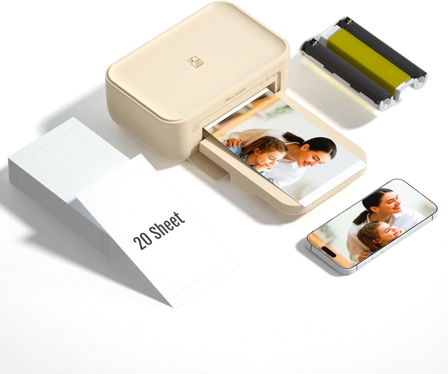 - Lowest Photo Cost; This HPRT photo printer bundle includes 20 Pcs of photo paper and 1 cartridges in total. No need to place extra orders for sheets or cartridge in a short time. No need to spend more money on printing, you can easily print at home with our HPRT printer, saving at least half of the photo cost.