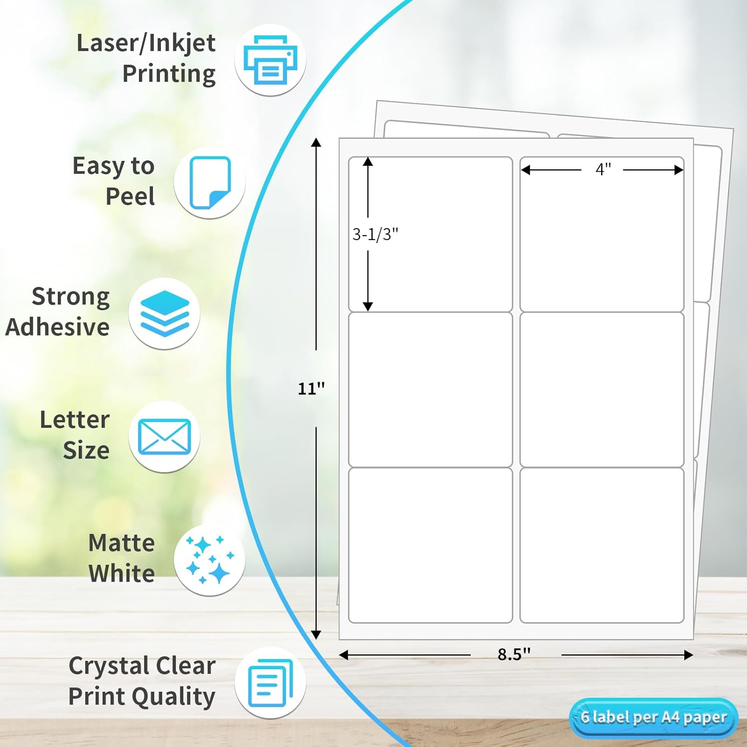 FungLam Printable Sticker Paper, 3-1/3" x 4" Shipping Address Labels 180 Blank Mailing Labels for Laser & Inkjet Printers, 6 per Page Label Stickers, 30 Sheets