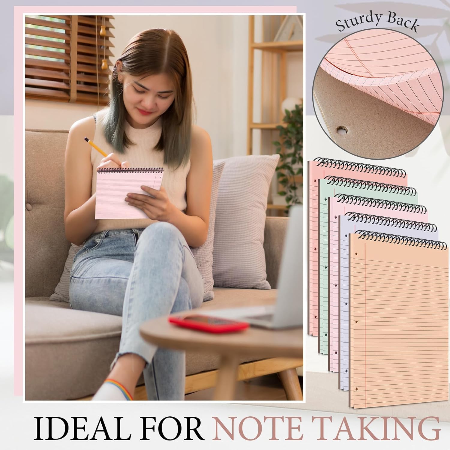 10 Packs 8.5" x 11" Top Spiral Notebook with 3 Hole Punched Legal Pads College Ruled Notepad 50 Sheets Hard Cardboard Paper Wirebound Notepad for Office School Business (Light Colors)