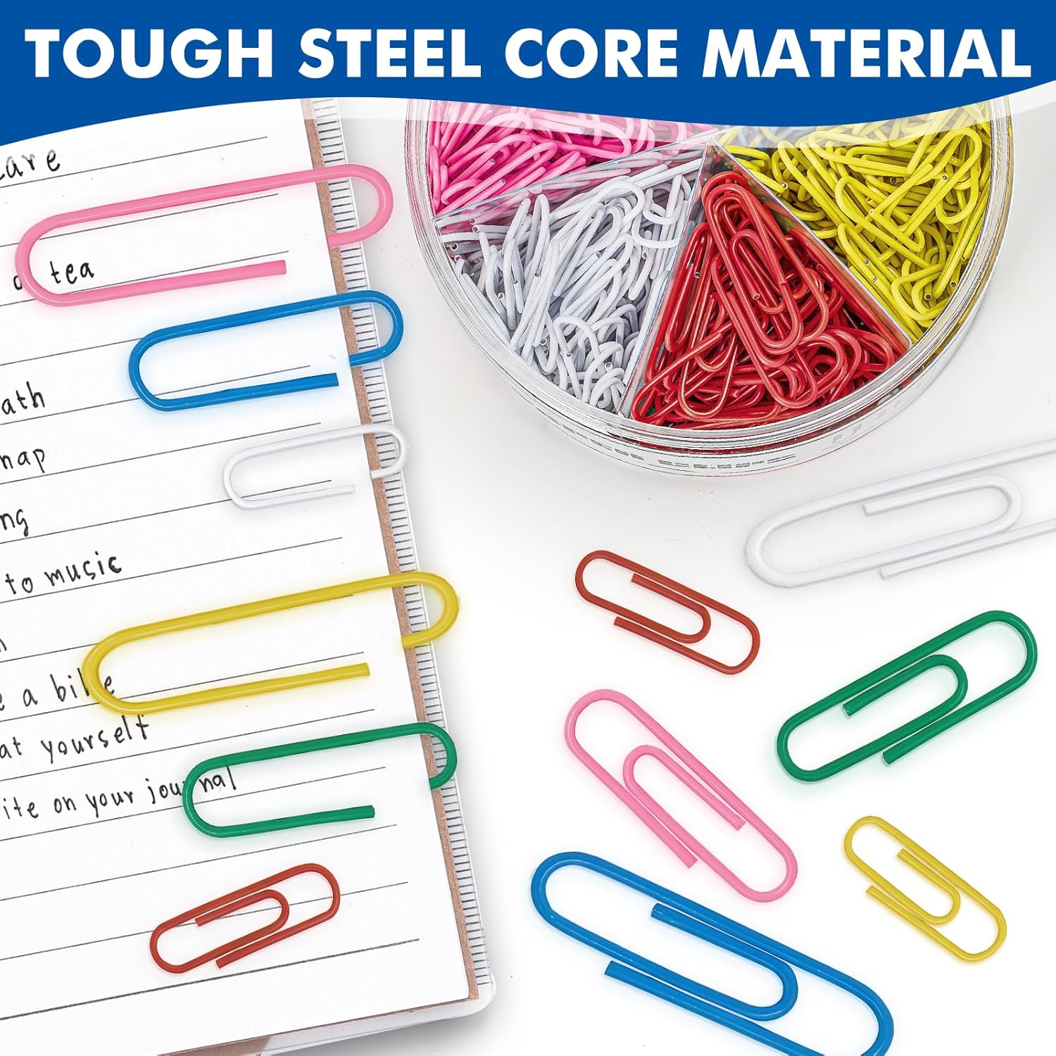 1000 Paper Clips Assorted Sizes, Large, Medium, and Small Colored Paper Clips, Durable, Rustproof, Great for Office Supplies, School, Home Organization(50mm, 33mm, 28mm)