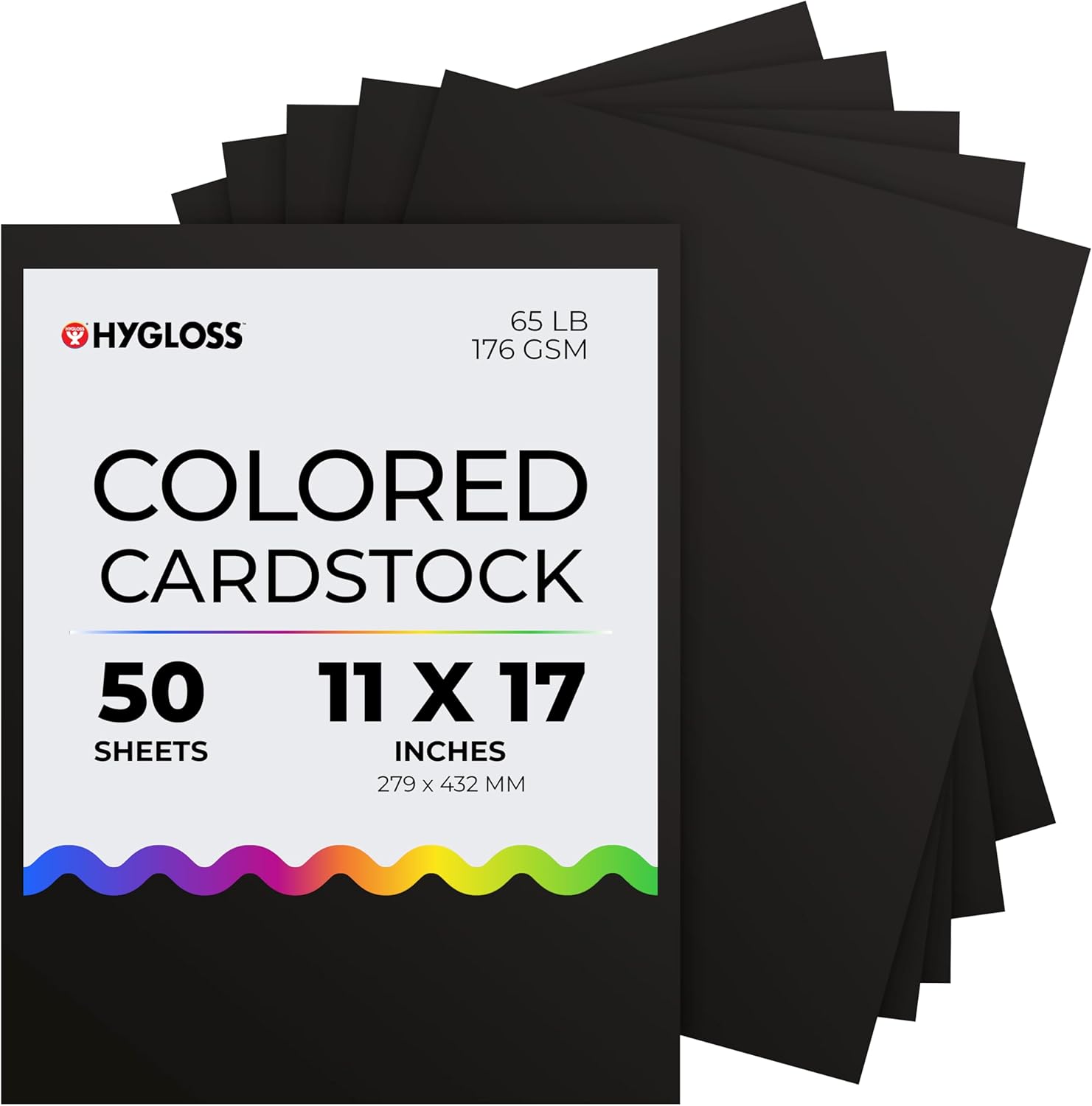 Hygloss Black Cardstock - 11x17-Inch, 50 Sheets, 65 lb/ 176 gsm, Fade-Resistant, Acid-Free Color Card Stock Paper