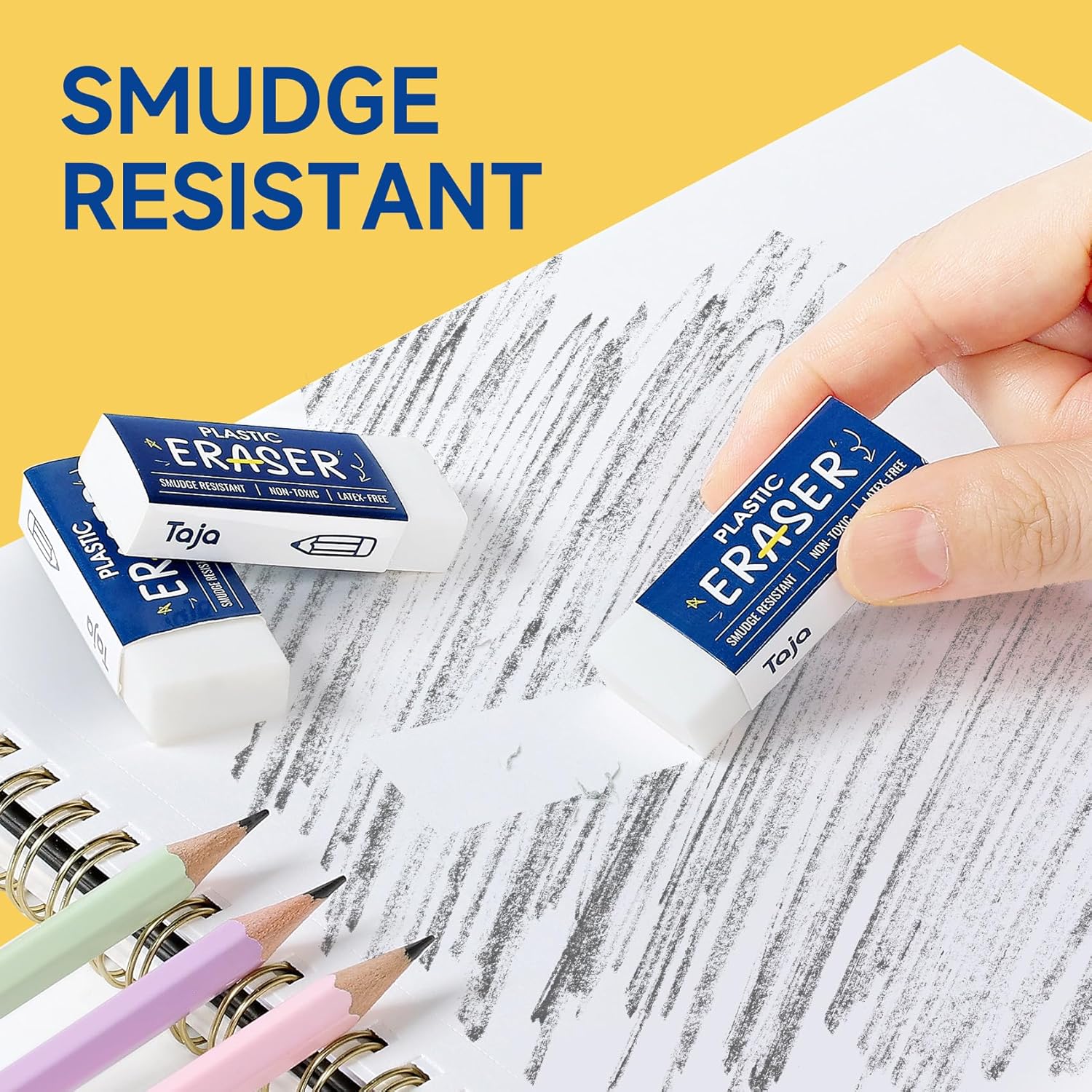 - Clean & Smudge-Free Erasing: Made from soft, latex-free, non-abrasive materials that erase smoothly without tearing or scratching paper. Taja erasers remove pencil marks cleanly and efficiently without leaving smudges or residue. Perfect for tests, sketches, notes, or designs, delivering precise, mess-free corrections every time.