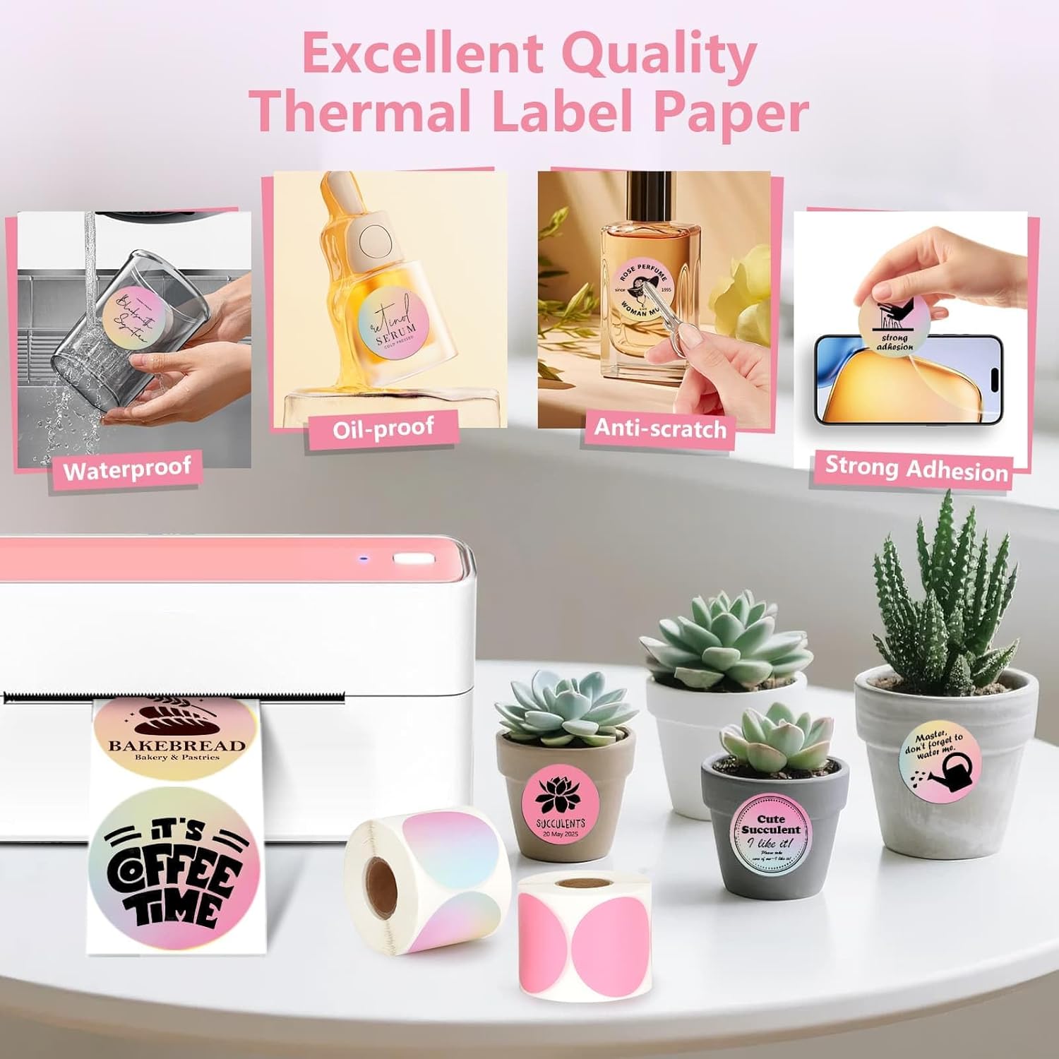- Easy To Tear & Stick, Safty and Relief:Thermal self-adhesive label paper is made of high-quality adhesive, strong adhesive, no need to use extra glue, not easy to fall off and warp, and won't leave any residue or damage the surface of the item after peeling. Thermal labels do not contain BPA and BPS, safe and reliable for users, no matter adults and children, use it without worries.