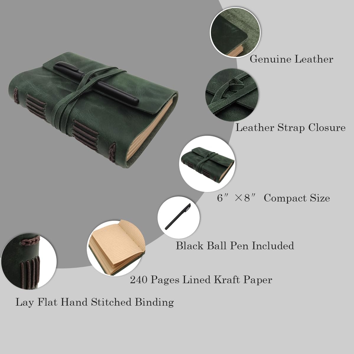 - PERFECT SIZE - Large green notebook journal Compact 8.5” x 6.2” size, Leather journal writing notebook easy to carry when travelling or in your daily life,Highly recognized leather journaling notebooks and leather journal lined