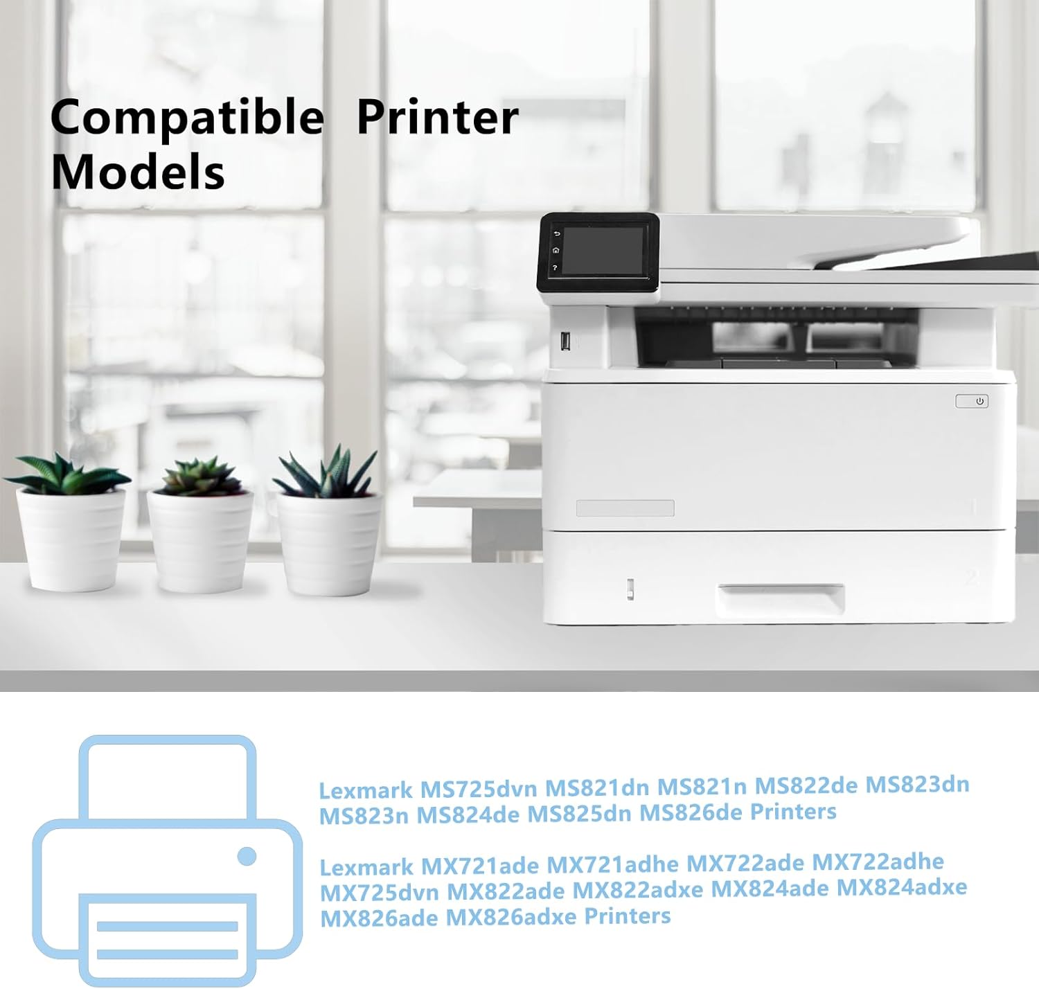 - Compatible Printer: MS725dvn MS821dn MS821n MS822de MS823dn MS823n MS824de MS825dn MS826de MX721ade MX721adhe MX722ade MX722adhe MX725dvn MX822ade MX822adxe MX824ade MX824adxe MX826ade MX826adxe Printers