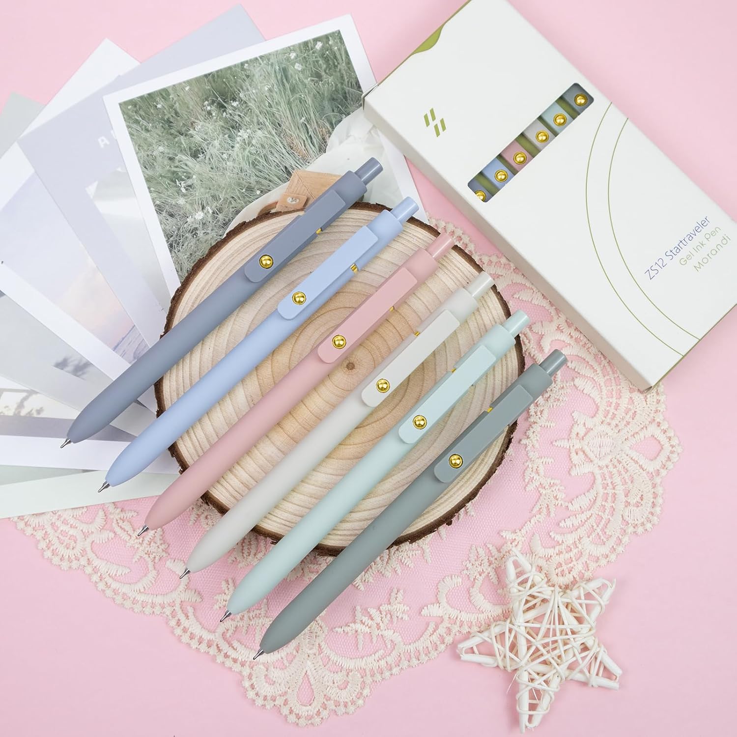 Gel Pens, 6 pcs 0.5mm Black Ink Pens Gold Morandi Barrel Fine Point Smooth Writing Pens Quick Dry Pen for School Office Supplies, Gifts for Girls Women