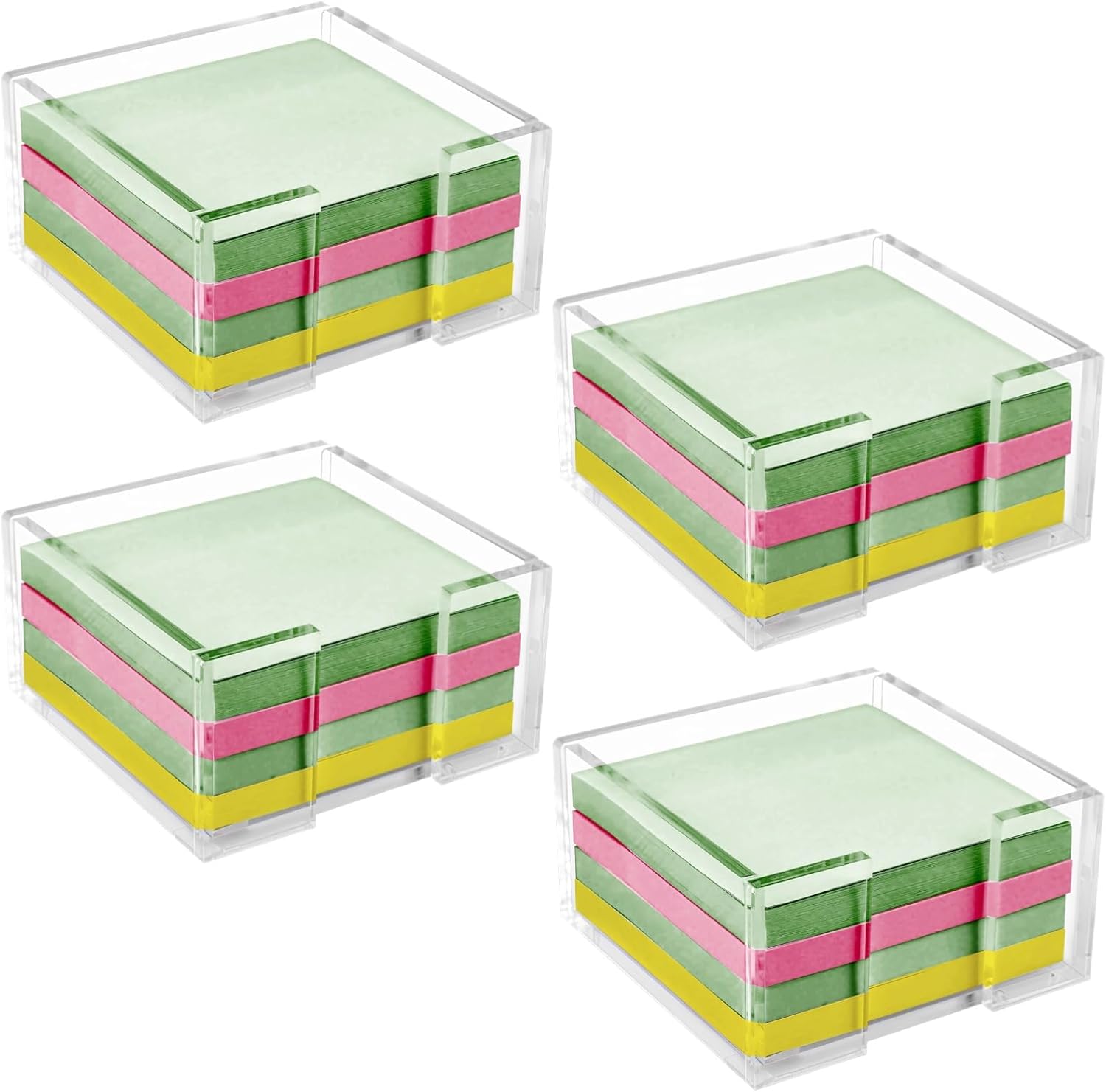 4 Pcs Acrylic Sticky Note Holder for Desk, Transparent Post-it Note Holders with 4 Notepads, Square Design, Ideal for Home, Office Organization