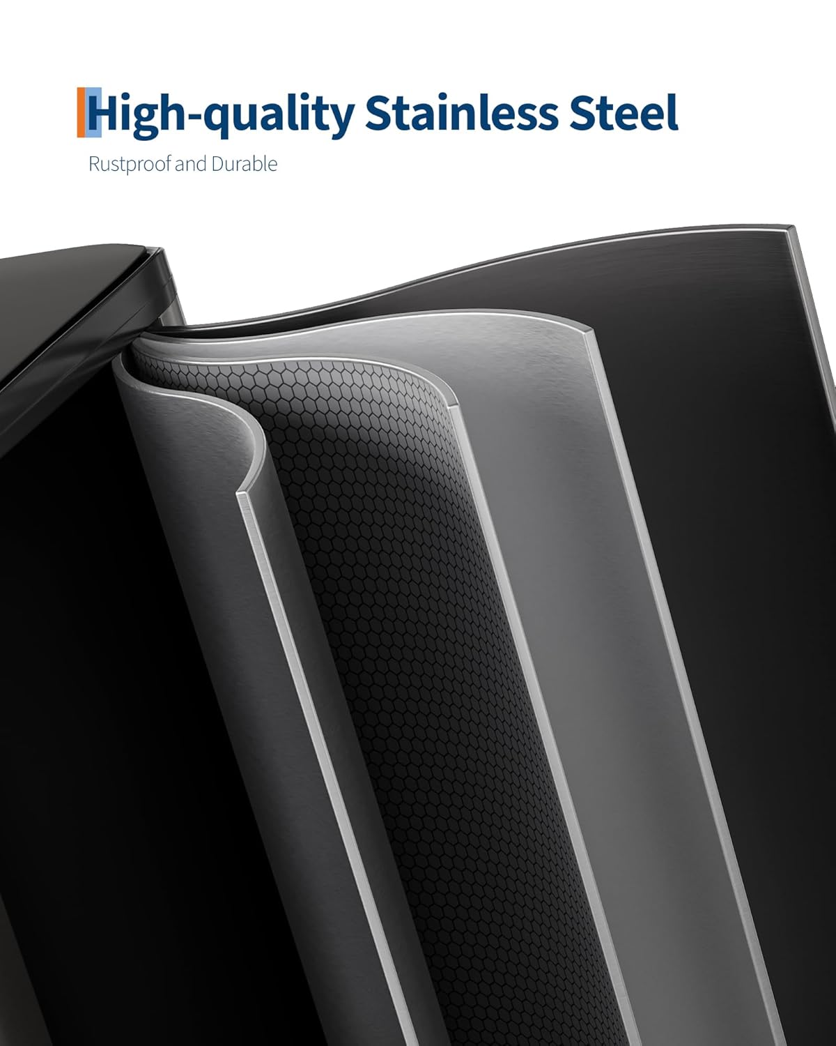 - [HIGH-QUALITY MATERIALS] – GarveeHome stainless steel trash can with lid is engineered for longevity. Its 410-grade ferritic stainless-steel shell delivers rustproof strength, scratch resistance and lasting luster. Two polypropylene inner buckets repel stains, odors and moisture. A thick ABS lid with stainless overlay resists dents; the industrial steel pedal endures 150,000+ steps and the one-piece ABS hinge survives over 300,000 open/close cycles