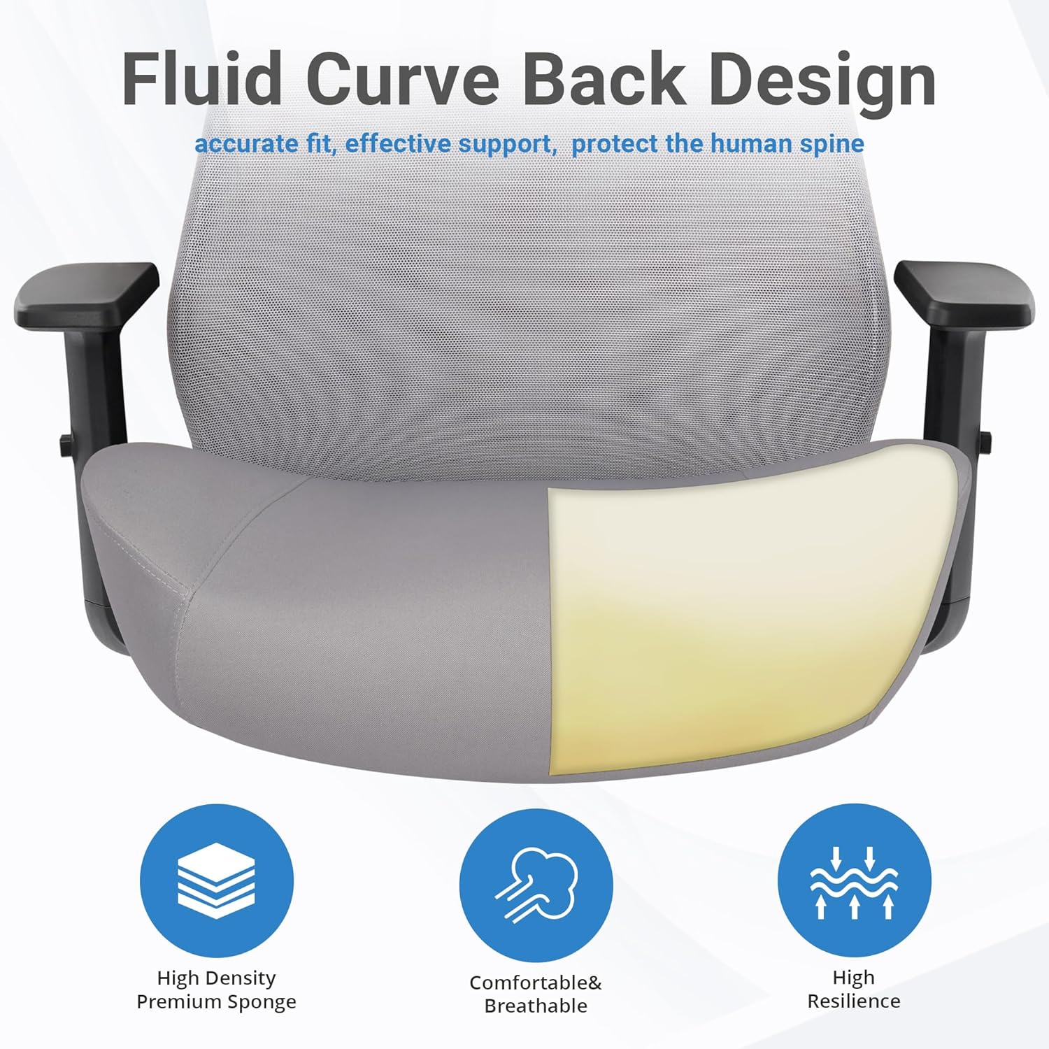 HYLONE Office Chair, 5" Thickened Seat Ergonomic Desk Chair with Adjustable Armrests, Home Office Computer Chairs for Long Hours Mesh Executive Chair(Black Base&Grey)