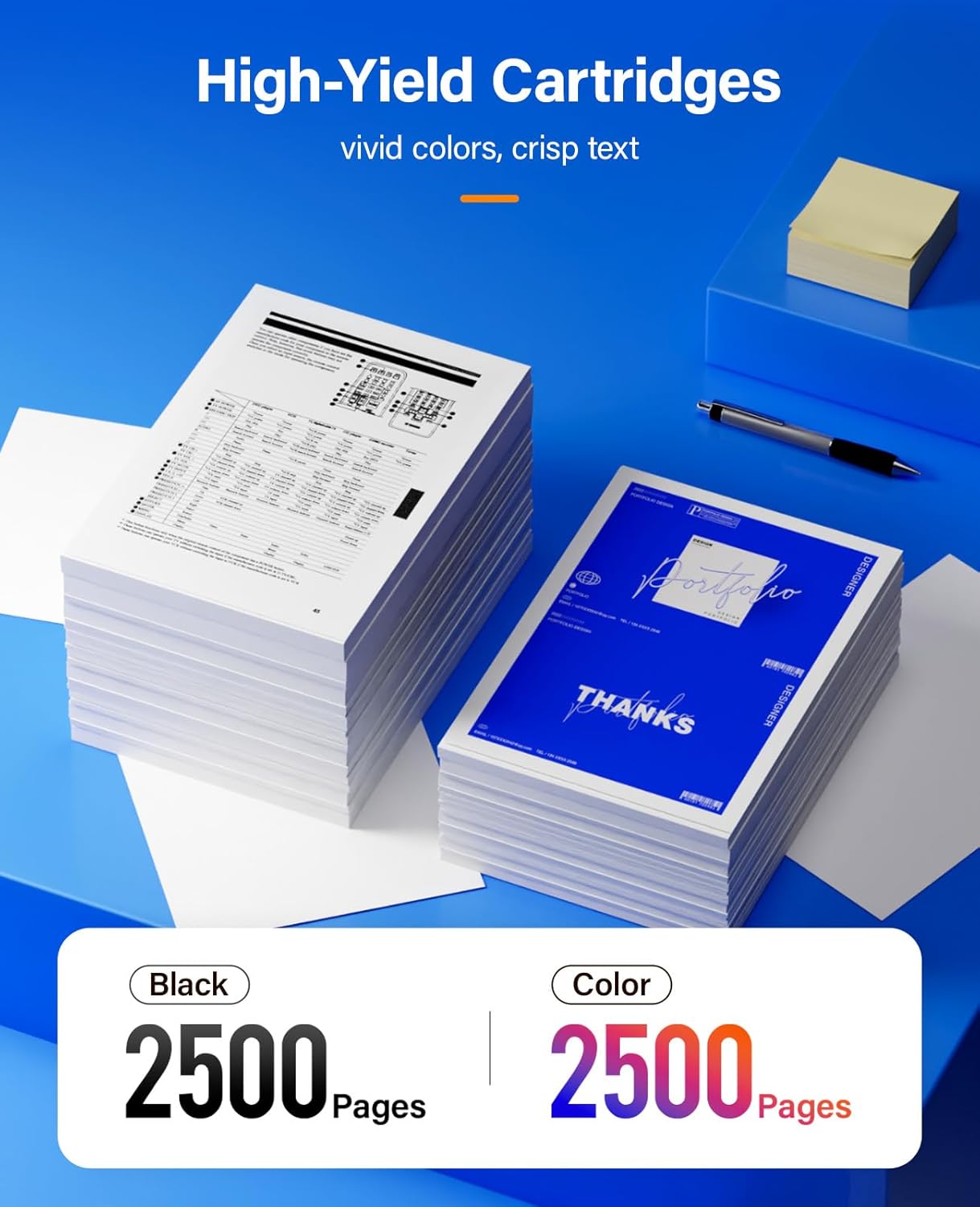 - Page Yield: Up to 2500 pages at 5% coverage (Letter/A4) per cartridge, (Based on 5% Coverage).