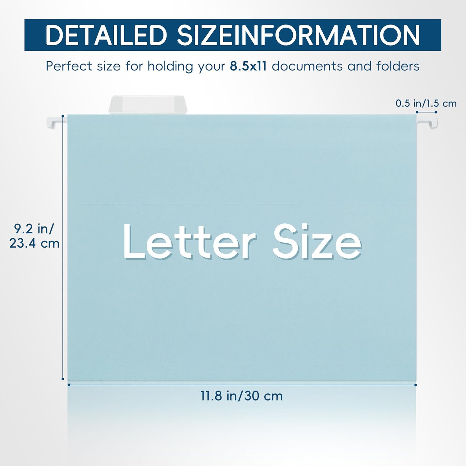 - Effective Filing Solution – These LETTER SIZE 8.5x11 hanging file folders save desktop space, enabling neat and efficient storage of files in offices or homes. Organize documents effortlessly with this 25 Pack set.