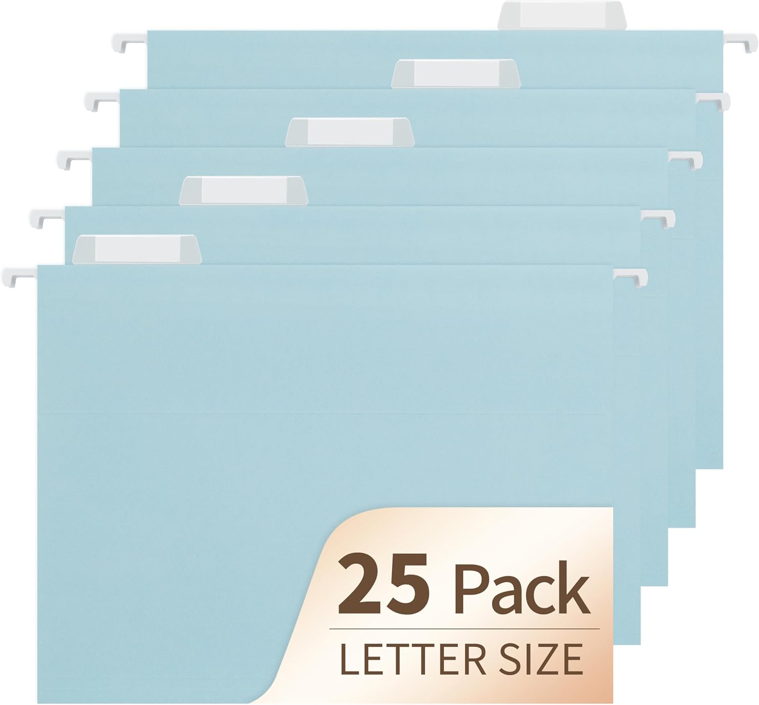 Hanging File Folders, 25 Pack Letter Size File Folders with 1/5-cut Tabs, Office Essentials for Filing Cabinet & Desk Storage