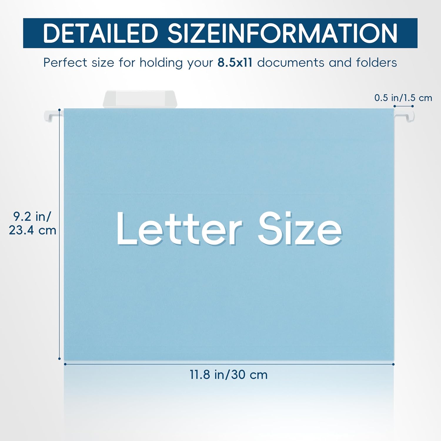 - Effective Filing Solution – These LETTER SIZE 8.5x11 hanging file folders save desktop space, enabling neat and efficient storage of files in offices or homes. Organize documents effortlessly with this 25 Pack set.