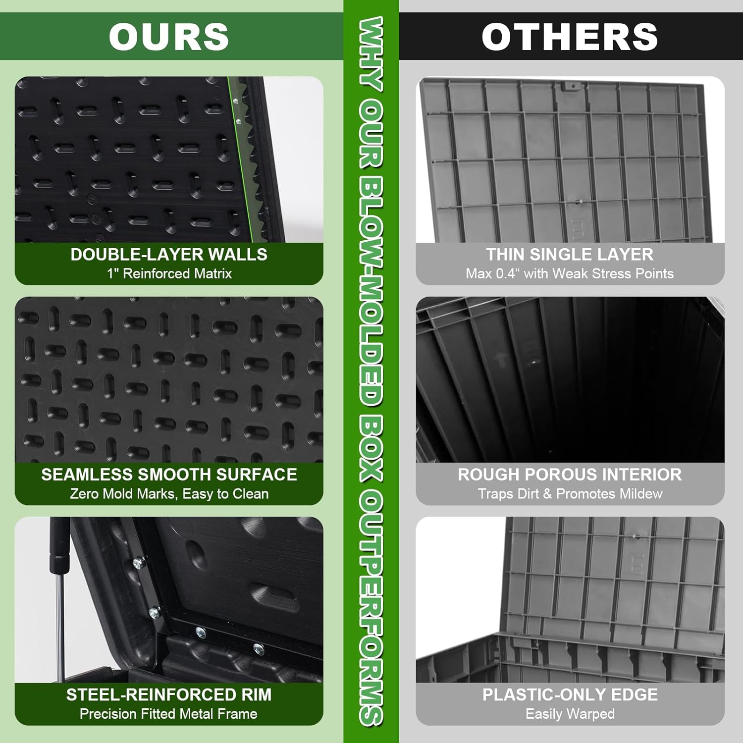- Heavy-Duty & Sturdy Construction: Engineered for durability, our garden storage box clearance resists warping and cracking. Unlike flimsy competitors, its reinforced structure supports heavy loads and doubles as seating—ideal for patios, decks, or boat docks.