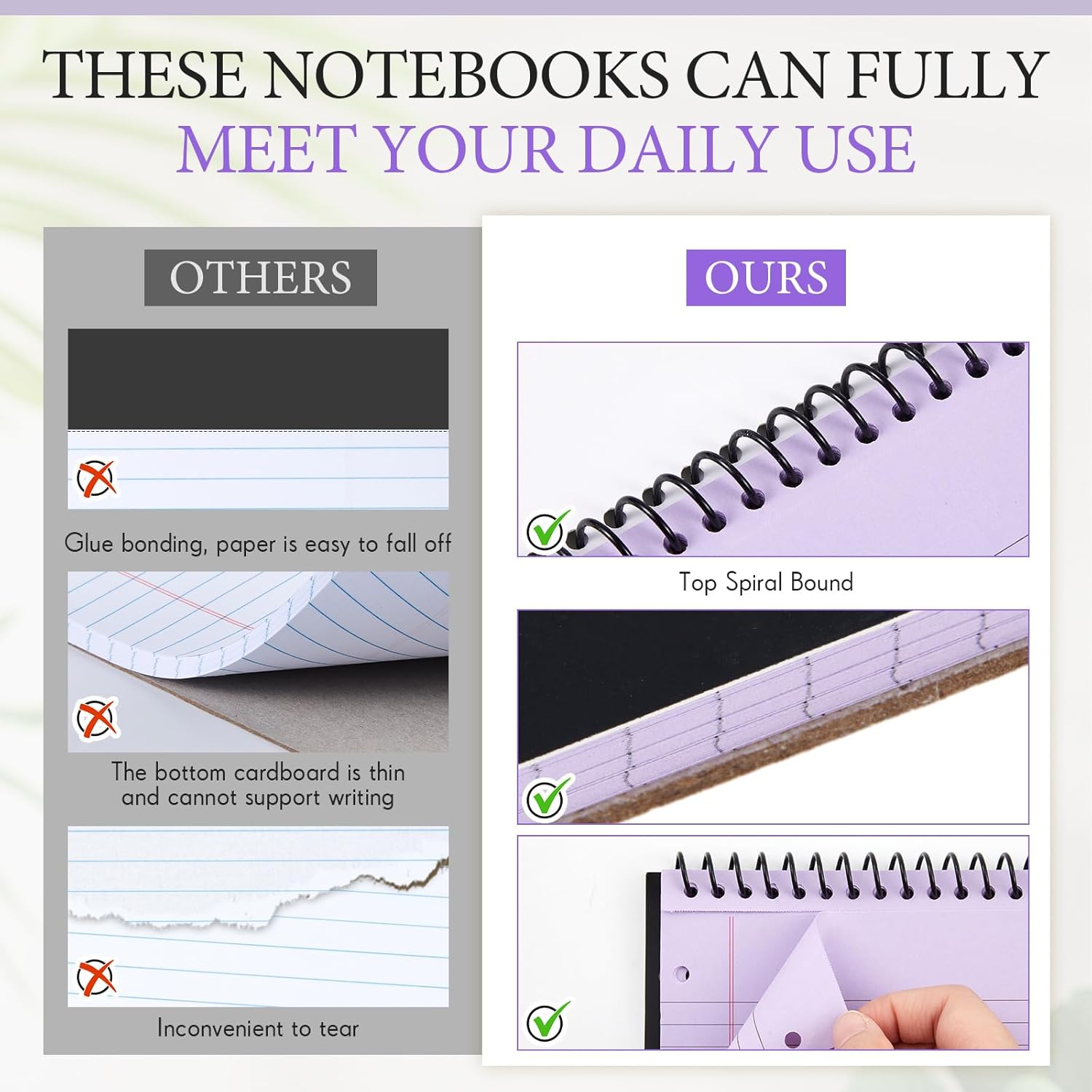 - Top Bound Spiral Notebook for Easy Note Taking and Clean Tear out: the legal notepads 8.5 x 11 inch are wire bound for ease of note taking; They also have an easy tear design, ensuring you can remove pages neatly and without any messy paper trails