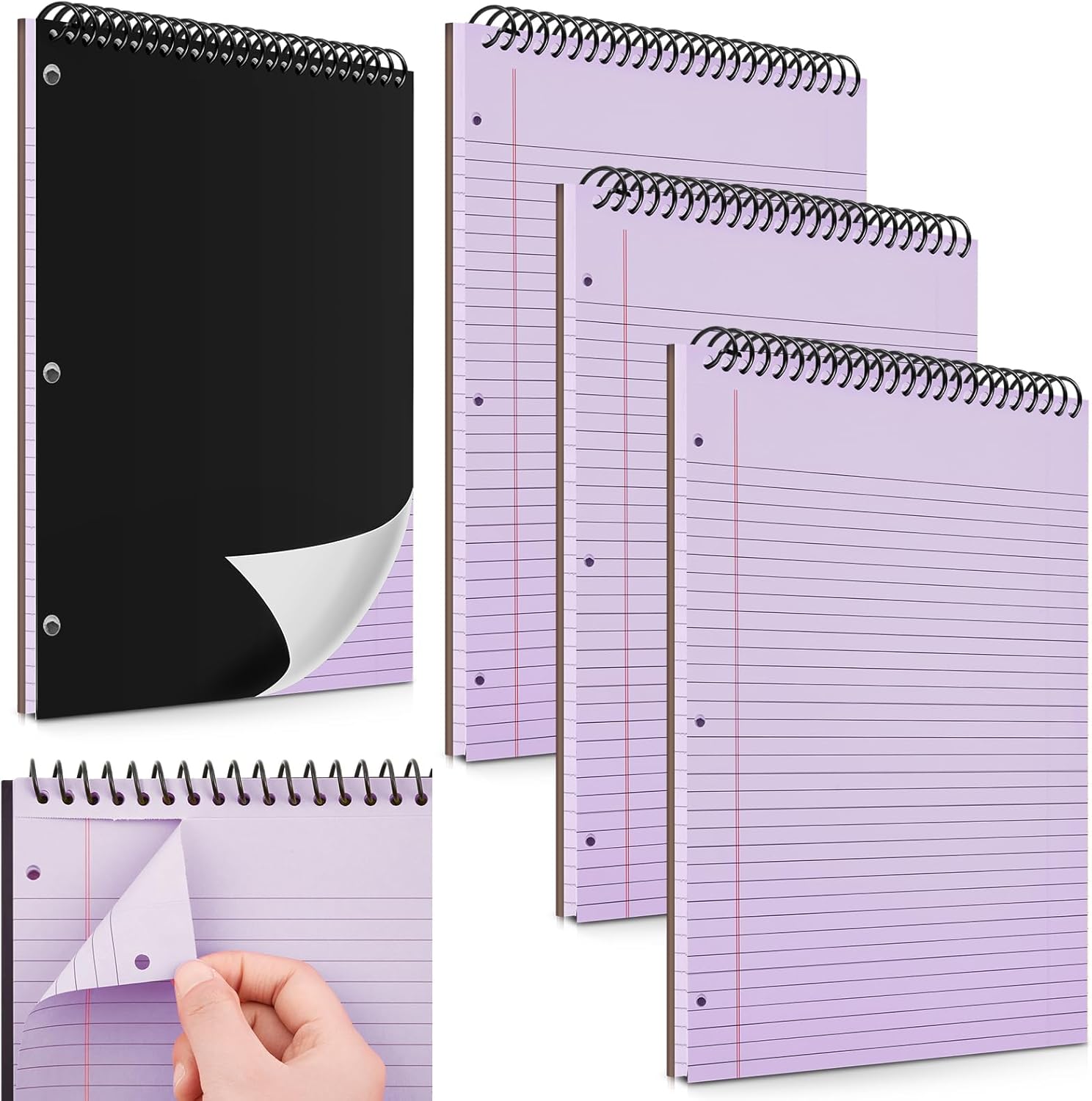 - Ideal for Note Taking: there comes with 3 pieces of legal pads, with 50 sheets in each pad, a total of 150 sheets, have been designed specifically to serve multiple uses; Hard cardboard backing makes writing easy; And the black cover gives a sleek look, while the purple wide ruled paper lets your writing stand out
