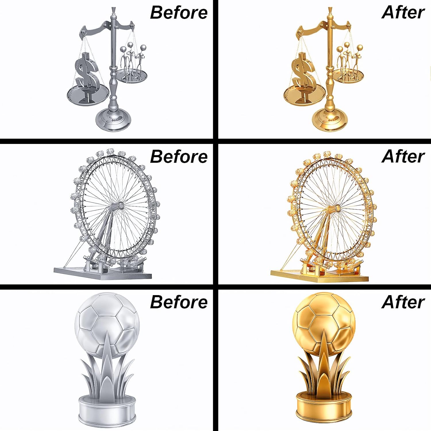 - Wide Application: High gloss reflective gold plating kit metallic markers can be created on most smooth surfaces (such as plastic, glass,metal, rock painting, paper, canvas, ceramic) Perfect for arts and crafts, model paints for plastic models scratch repair, DIY projects, Easter eggs, card making, Christmas cards, cars steering wheel logo, etc. For the best mirror-effect, please apply it on a smooth and non-absorbent surface.