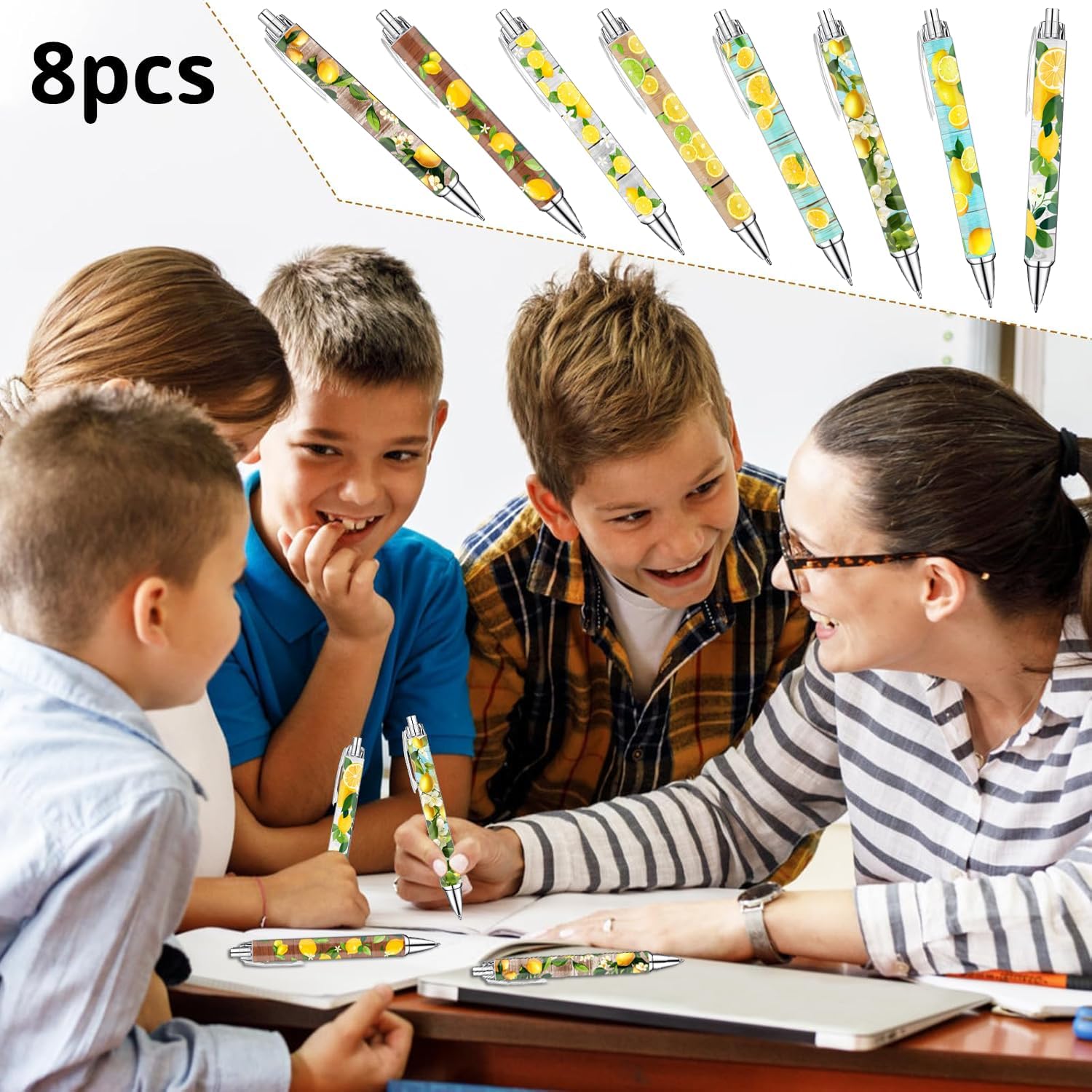 Idealmuzik Lemon Pens Set – Fun Citrus-Themed Pens for Girls, Students, and Stationery Lovers – Smooth Writing Ballpoint Pens for School, Journaling, or Gifts – Bright and Cheery Design, 8 Pack