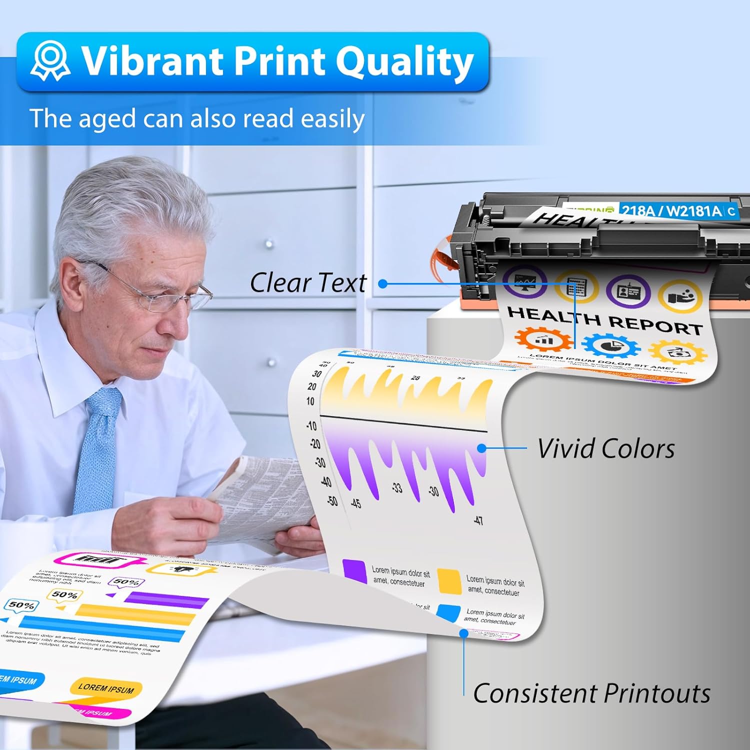 - [Vibrant Print Quality] Replacement for HP 218a toner cartridges 4 pack - enhance productivity for office reports/contracts, create vibrant photos/files for home users, support school assignments finish and boost higher score for students.Simplify tasks for all