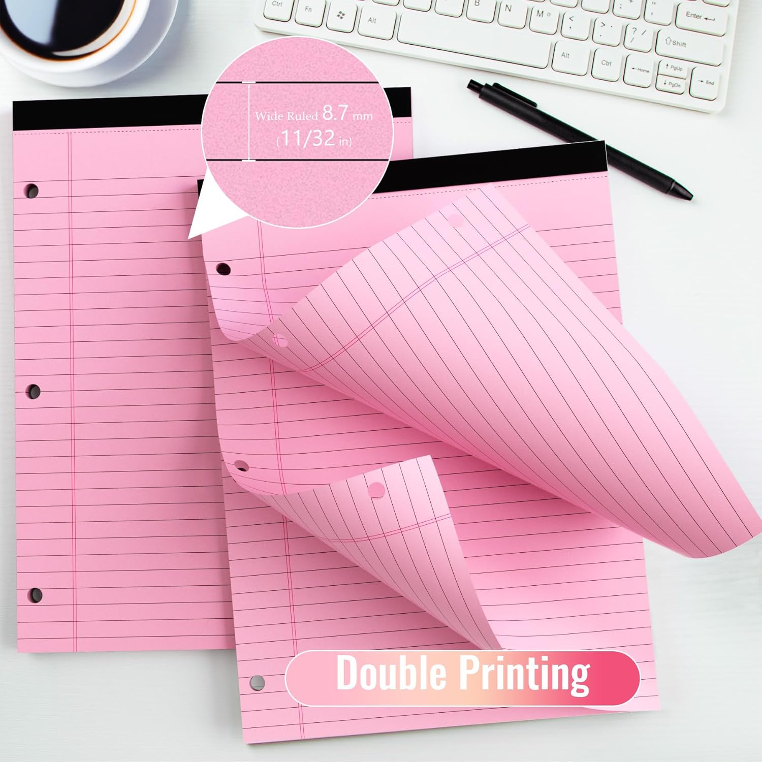 HAUTOCO 2 Pack 8.5 x 11 Legal Pads Pink Wide Ruled Notepads Perforated Writing Pads, 30 Sheets Per Notepad, 3-Hole Punched Paper, Writing Note Pads for School, Home, Office, Business