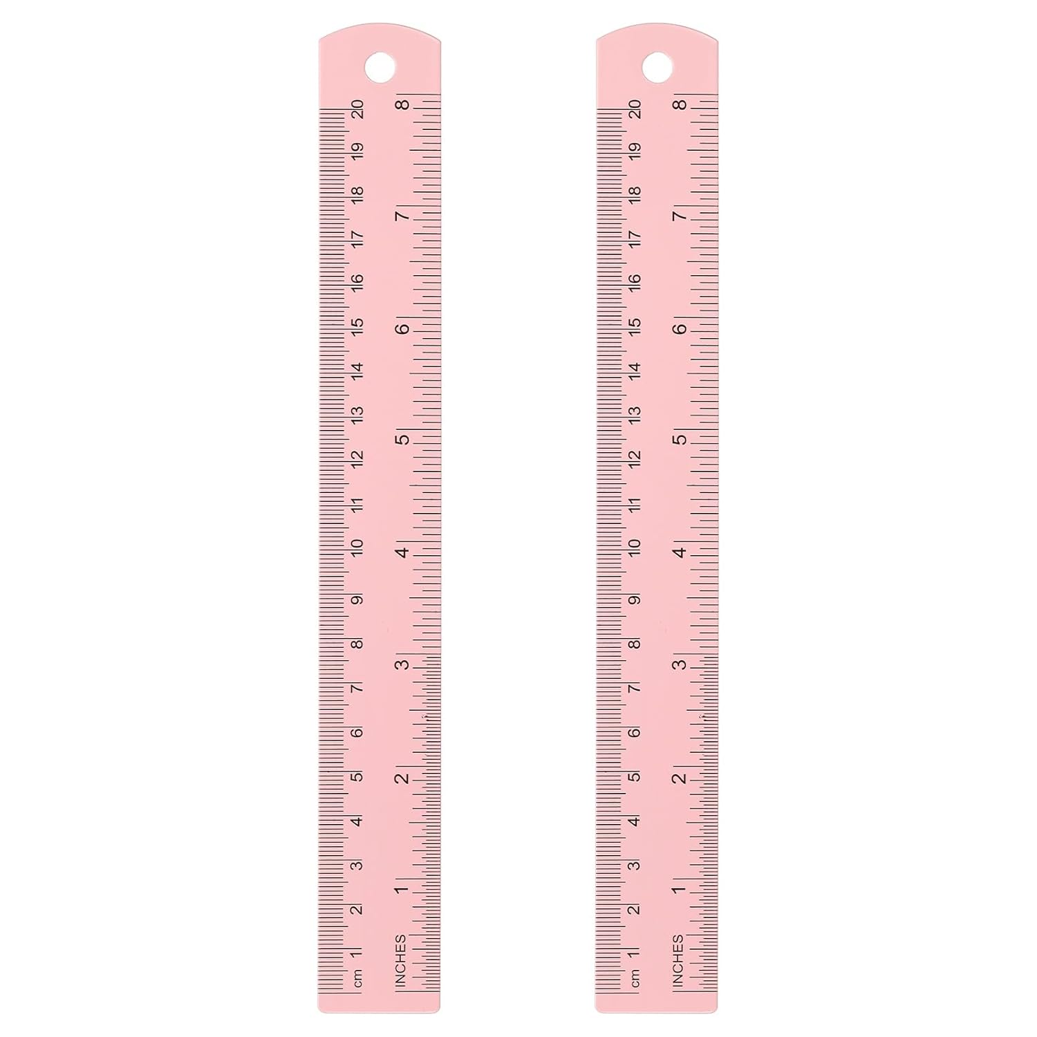 HARFINGTON 2pcs Metal Straight Ruler 20cm Metric SAE Aluminum Alloy Measuring Rulers Scale Tool with Hole for Measure Study Reading Classroom Office, Pink