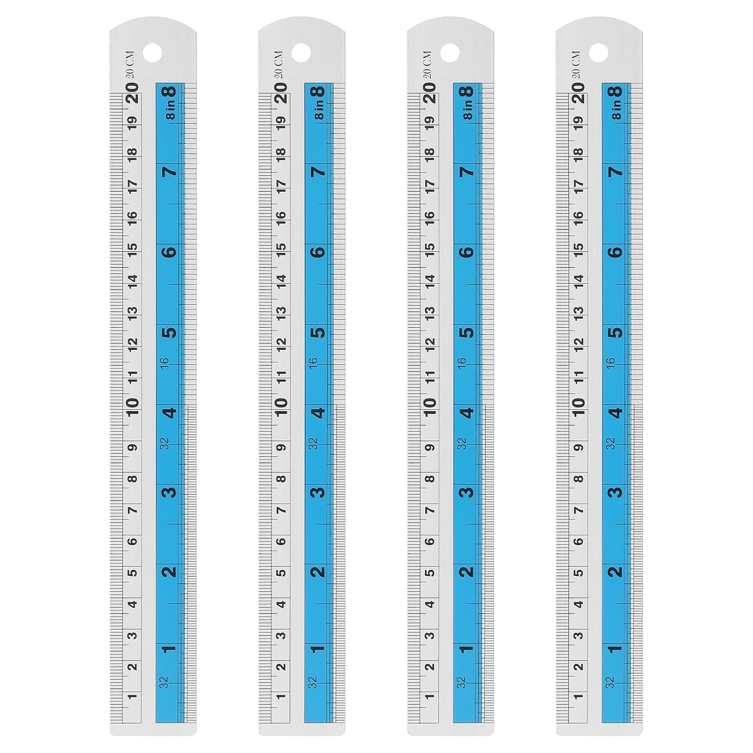 HARFINGTON 4pcs Metal Straight Ruler 20cm Metric SAE Aluminum Alloy Measuring Rulers Scale Tools with Hole for Measure Study Reading Classroom Office, Blue