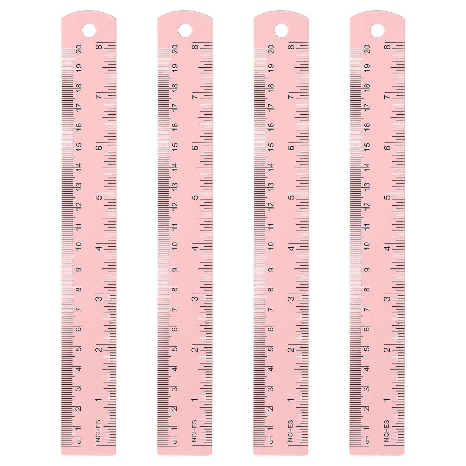 HARFINGTON 4pcs Metal Straight Ruler 20cm Metric SAE Aluminum Alloy Measuring Rulers Scale Tool with Hole for Measure Study Reading Classroom Office, Pink