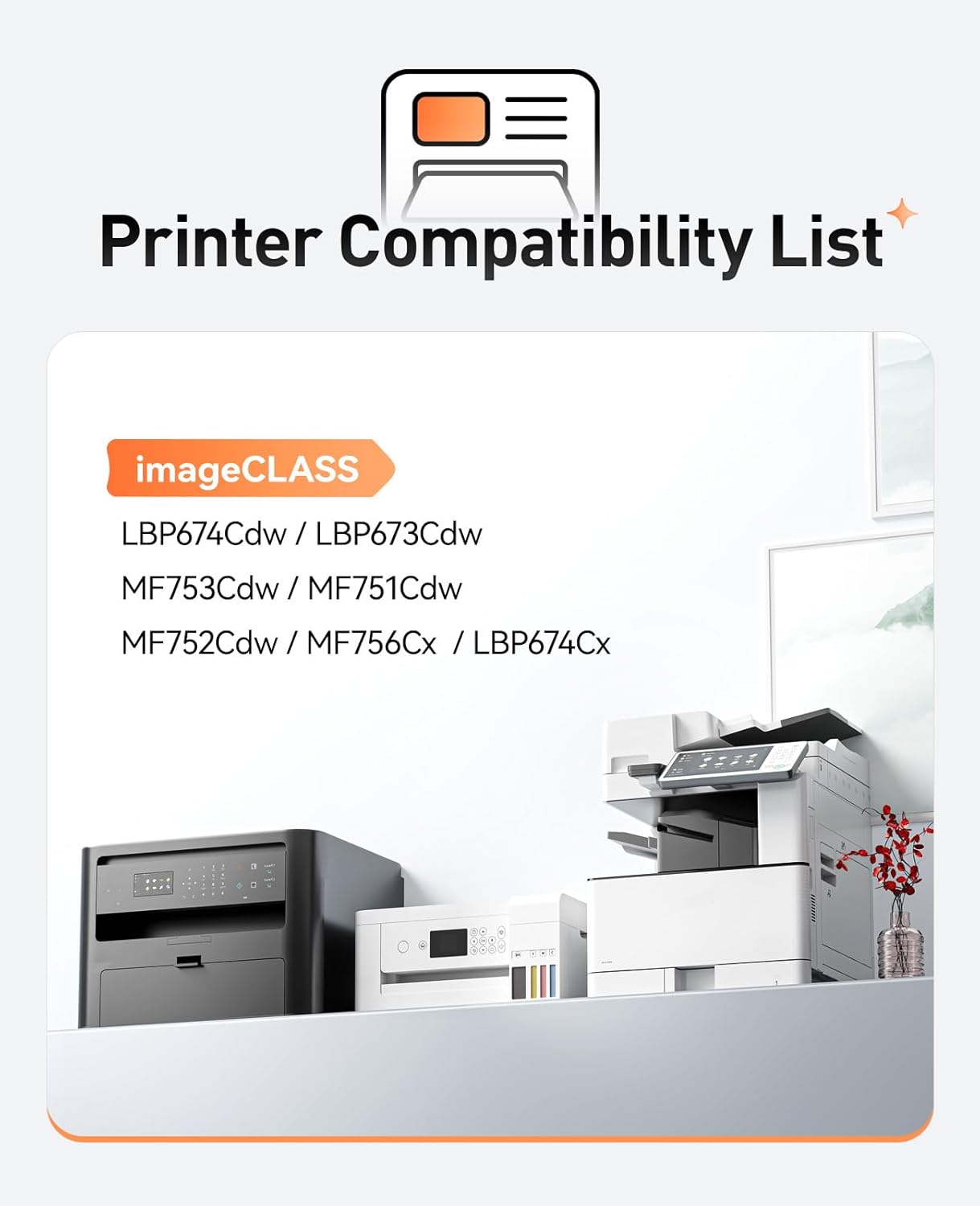 - Compatible Printers: Compatible with Canon "ImageCLASS “MF”Series: MF753Cdw, MF751Cdw,MF752Cdw, MF756Cx ImageCLASS “LBP”Series: LBP674Cdw, LBP673Cdw, LBP674Cx"