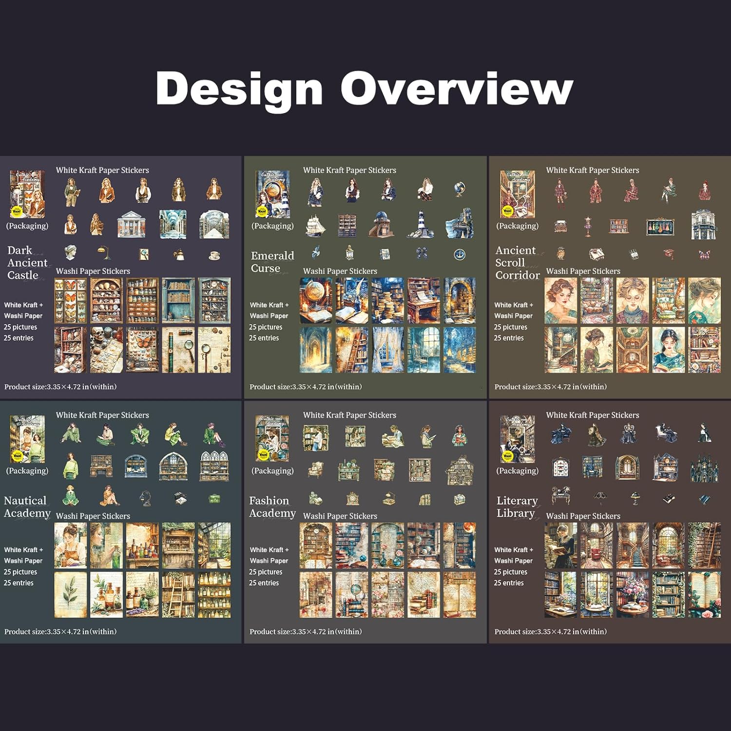 - Gothic Storybook Style: This sticker set includes 150 pre-cut pieces across 6 gothic-inspired themes featuring vintage libraries, mysterious characters, and classic academy scenery to enrich your scrapbooks and journals with immersive narratives