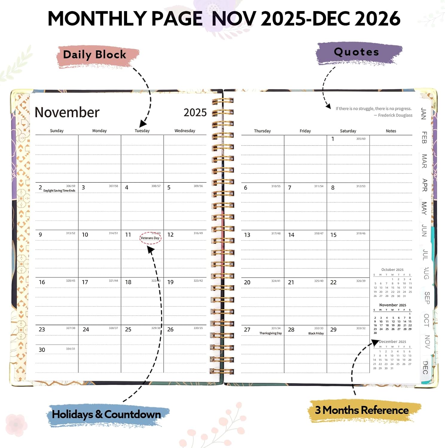- 【Monthly & Weekly Planner】The 2026 planner has monthly and weekly pages with major US holidays, mini calendar for last and next month, including enough space to write your daily schedule, appointment and events, making your life stay organized.