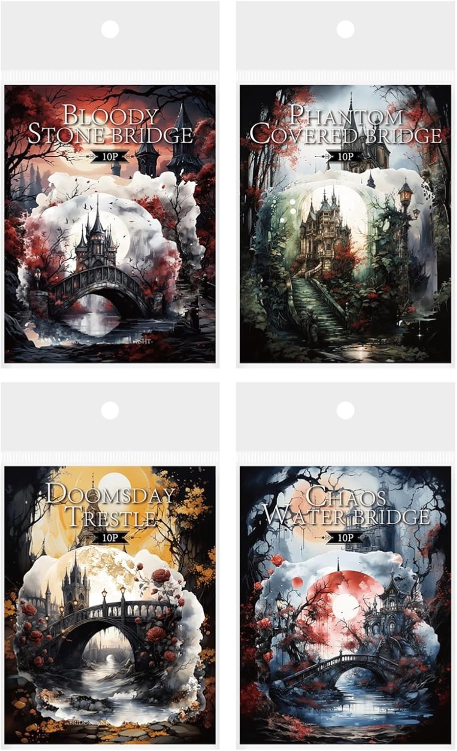 40 Pieces Gothic Bridge and Castle PET Scrapbook Stickers, 4 Pack Large Size Aesthetic Decorative Stickers for Scrapbooking, Planner, Junk Journaling Supplies, DIY Arts, Crafting