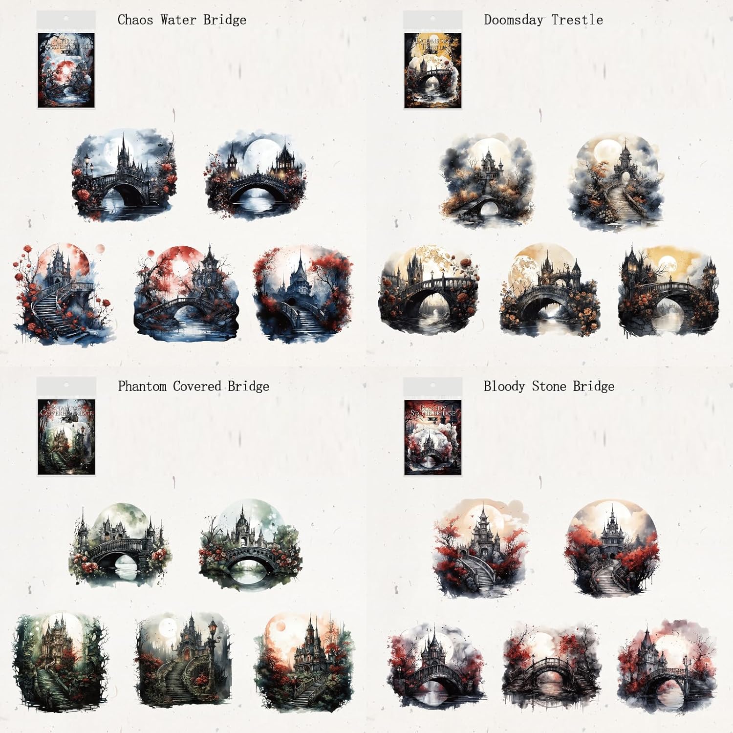 - Beautiful Designs: These scrapbook stickers set comes with 4 different themed color and different Scenes aesthetic stickers journaling supplies to meet all your needs including Bloody Stone Bridge, Phantom Covered Bridge, Doomsday Trestle and Chaos Water Bridge. Your friends will be amazed at the beautiful scrapbook you will create with this sticker bullet journal.