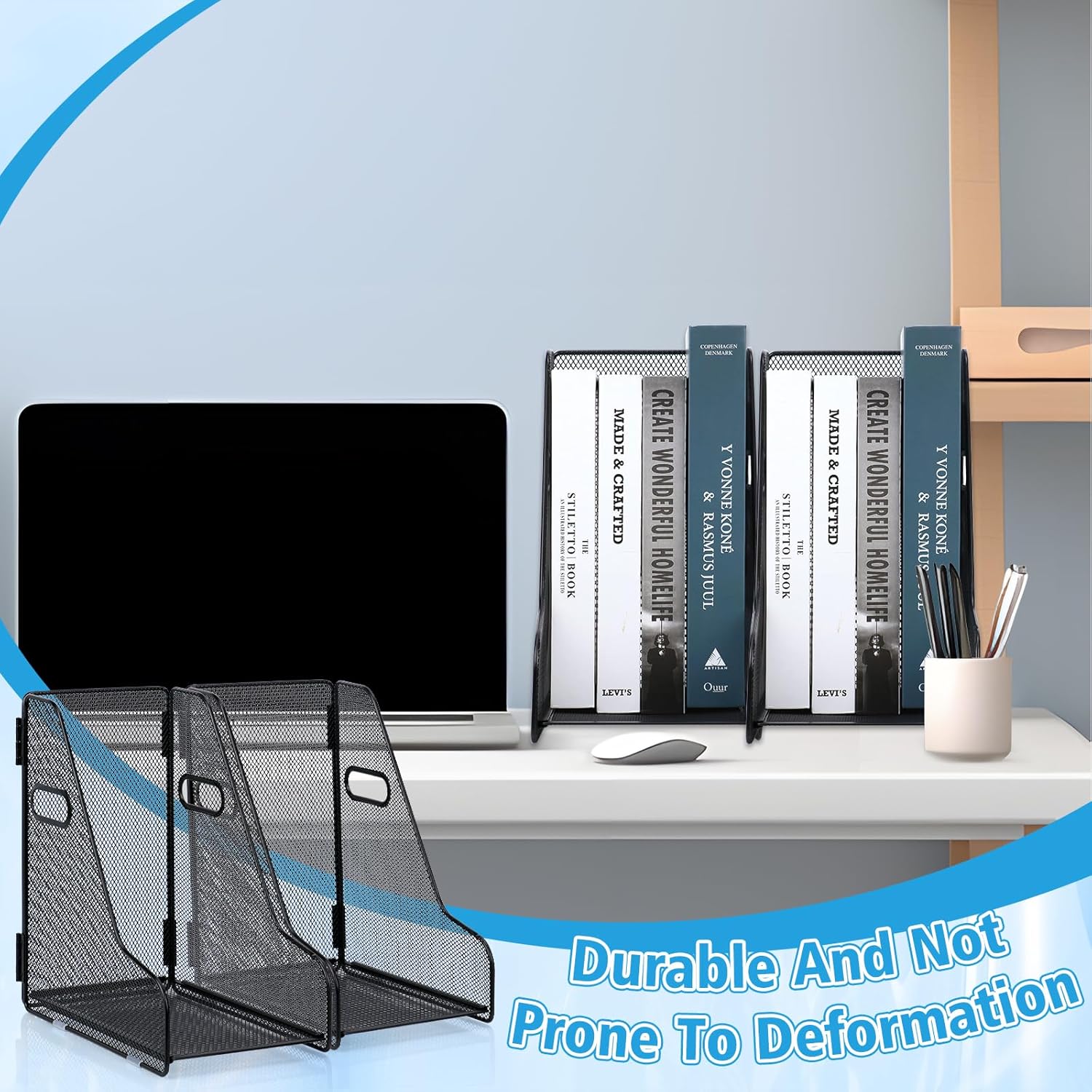 - 【Flexible And Expandable Large File Holders Combination】:Our large jumbo vertical file organizer set includes 2 separate vertical file holders with 10 non-slip silicone mats that can be used separately or together. Depending on your specific needs, you can flexibly expand and enhance the storage space. The independent design of the two magazine file holders can significantly increase the expansion function, giving you more storage options and greater flexibility.