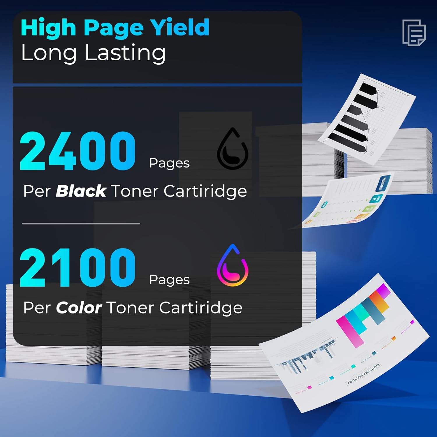 - High Compatibility: Replacement for color laser jet pro mfp m479fdw toner cartridges, color laserje m479fdw toner cartridges, mfp m479fdw m479 toner cartridges, mfp m479fdn toner cartridges; compatible for color laser jet pro m454dw toner cartridge, color laserje m454dw toner cartridge, m454dn toner cartridge; enterprise mfp m480f toner and enterprise m455dn toner cartridge.