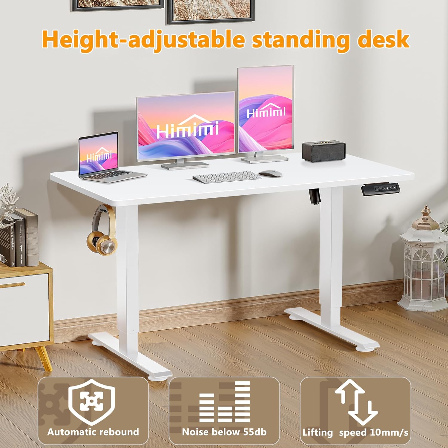 Himimi Electric Standing Desk 48 x 24 inch for Home Office,Sit-Stand Adjustable Desk with Memory Presets,Height Adjustable Desk for Gaming/Working,Free Hook, Lockable Wheels,White
